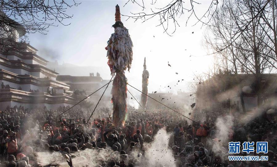 2月22日,日喀则江孜县白居寺广场举行“立经幡杆”宗教佛事活动。当日是藏历正月十五,一年一度的西藏日喀则江孜县白居寺等七座寺庙“立经幡杆”宗教佛事活动举行。来自四面八方的藏族群众互撒糌粑,祈福新年风调雨顺、五谷丰登。新华社记者 普布扎西 摄 图片来源:新华网