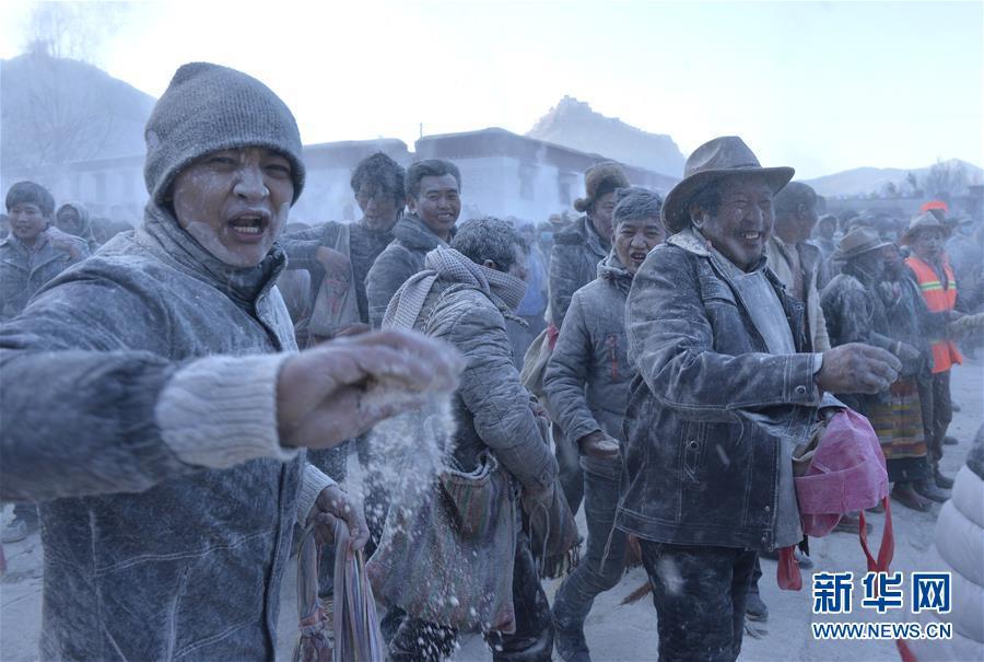 来源标题:西藏日喀则民众互撒糌粑闹新春