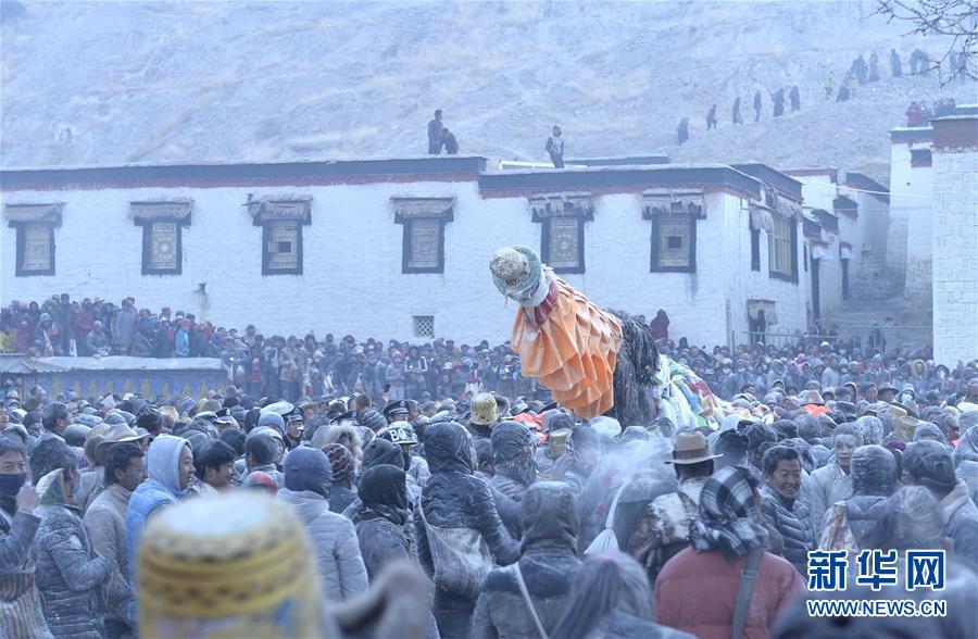 2月22日,日喀则江孜县白居寺广场举行“立经幡杆”宗教佛事活动。当日是藏历正月十五,一年一度的西藏日喀则江孜县白居寺等七座寺庙“立经幡杆”宗教佛事活动举行。来自四面八方的藏族群众互撒糌粑,祈福新年风调雨顺、五谷丰登。新华社记者 普布扎西 摄 图片来源:新华网