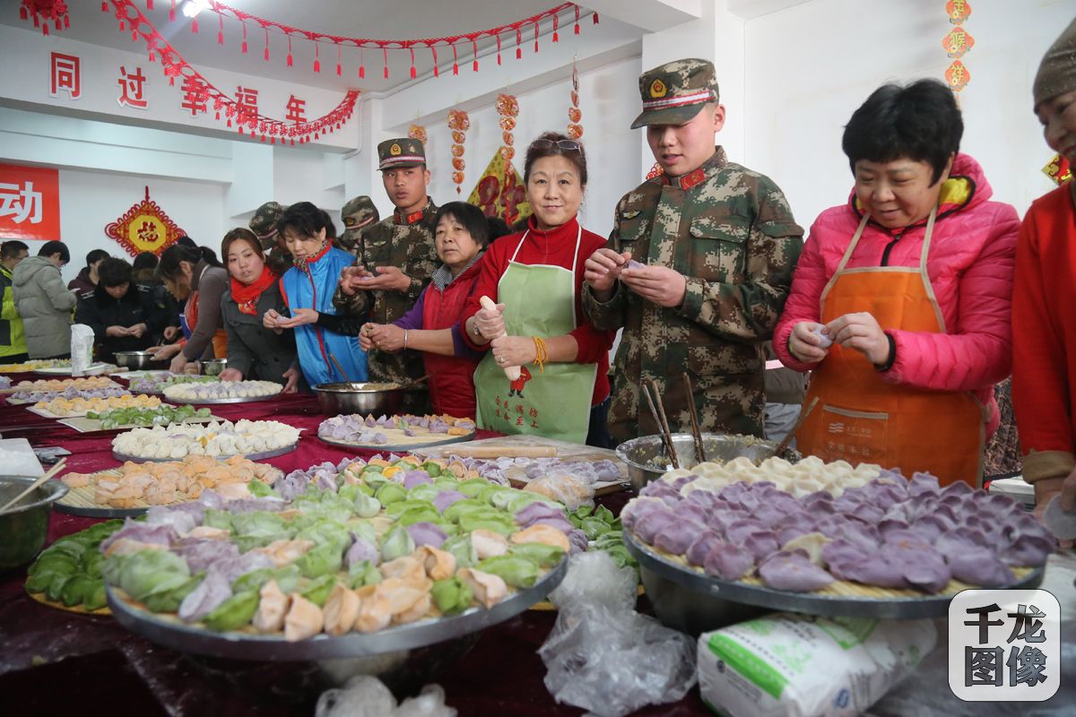 2月1日,北京丰台区南苑棚改居民总计2172户喜迁新居。图为街道领导、辖区单位、驻街部队、社区干部与棚改居民围在一起包团圆饺子。千龙网记者 戚连民摄
