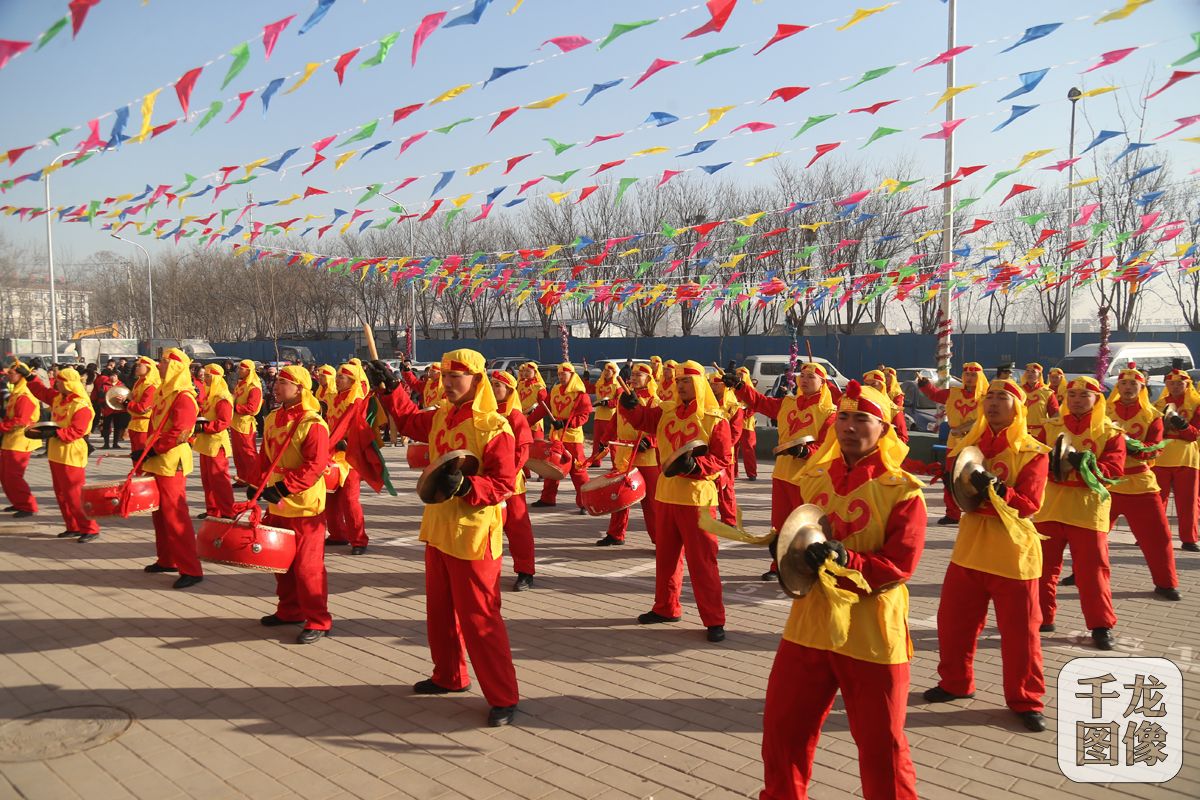 2月1日,北京丰台区南苑棚改居民总计2172户喜迁新居。图为共建部队武警九支队官兵表演的《威风锣鼓》。千龙网记者 戚连民摄