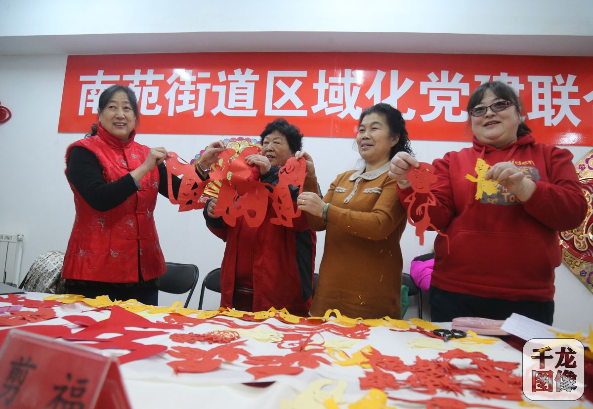 2月1日,北京丰台区南苑棚改居民总计2172户喜迁新居。图为社区居民为大家剪福字、送福字。千龙网记者 戚连民摄