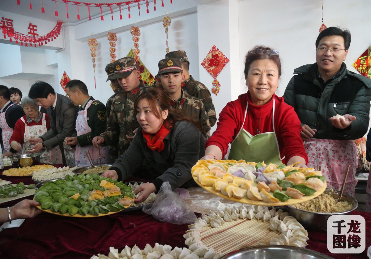 2月1日,北京丰台区南苑棚改居民总计2172户喜迁新居。图为街道领导、辖区单位、驻街部队、社区干部与棚改居民围在一起包团圆饺子。千龙网记者 戚连民摄