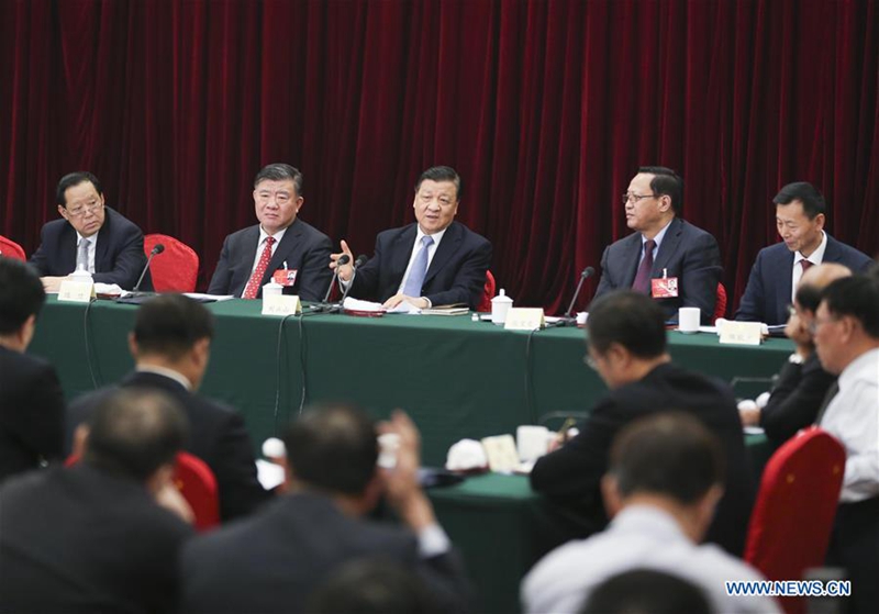 Liu Yunshan, a member of the Standing Committee of the Political Bureau of the Communist Party of China (CPC) Central Committee, joined the group discussion of the Chinese Peasants and Workers Democratic Party and China Democratic League.
