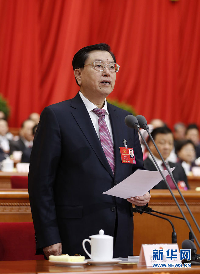 3月5日,第十二届全国人民代表大会第四次会议在北京人民大会堂开幕。张德江主持会议。 新华社记者 鞠鹏 摄