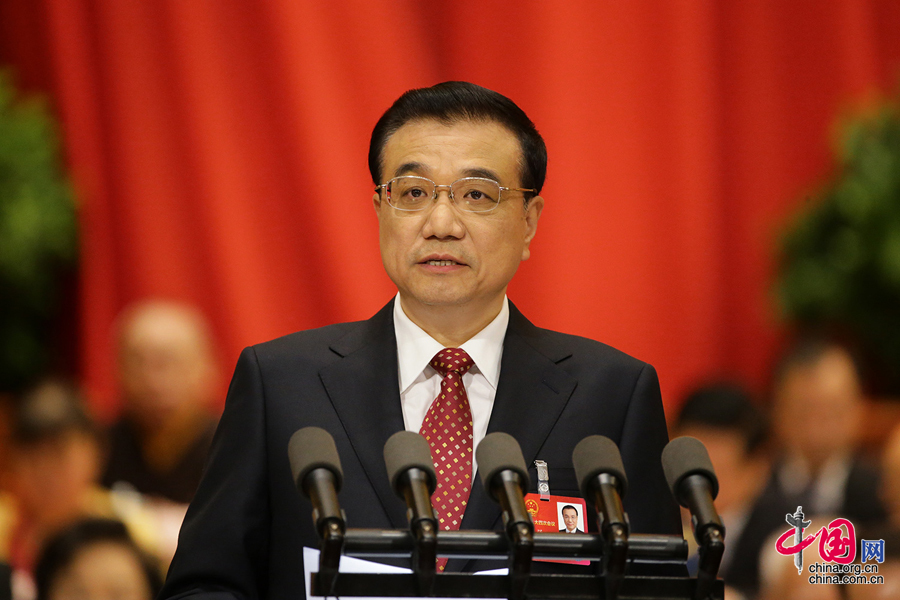Premier Li Keqiang delivers the annual government work report at the opening meeting of the fourth plenary session of the 12th National People's Congress, which opened at 9 a.m. on March 5, 2016 at the Great Hall of the People, Beijing. [Photo/China.org.cn]