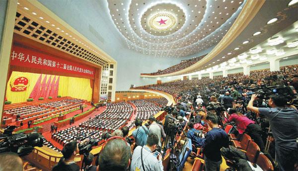 The National People's Congress opens its annual session at the Great Hall of the People in Beijing on Saturday.[Photo/China Daily]