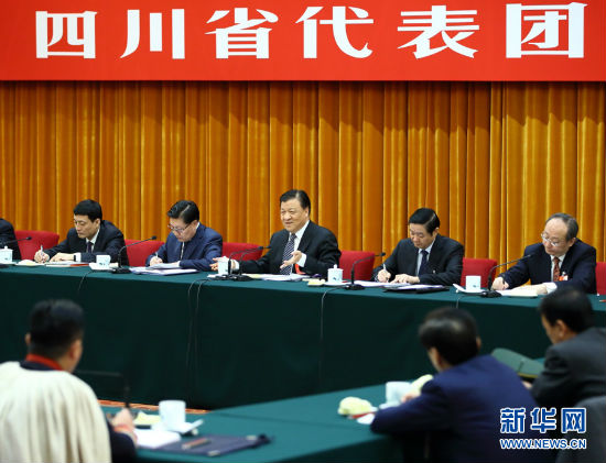 3月7日,中共中央政治局常委、中央书记处书记刘云山参加十二届全国人大四次会议四川代表团的审议。 新华社记者丁海涛摄