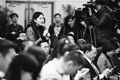 北青报记者向王毅提问摄影/本报记者 袁艺