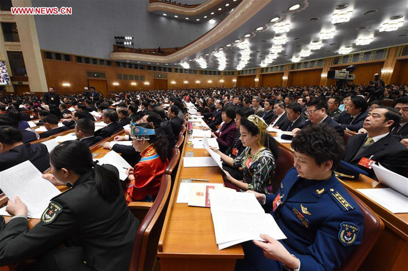 Deputies to the 12th National People's Congress attend the second plenary meeting of the fourth session of the 12th NPC at the Great Hall of the People in Beijing, capital of China, March 9, 2016. [Photo/Xinhua]