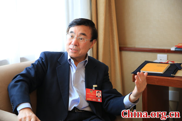 全国政协委员、中国外文局原副局长兼总编辑黄友义接受中国网记者采访。[中国网 何珊 摄]