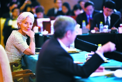 3月20日,国际货币基金组织总裁拉加德(左)倾听中国人民银行行长周小川发言。当日,由国务院发展研究中心主办、中国发展研究基金会承办的“中国发展高层论坛2016”在北京开幕。新华社记者 李鑫摄
