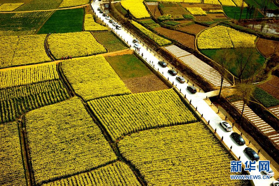 3月19日,自驾游车队行经汉中市南郑县张坪村的油菜花海。