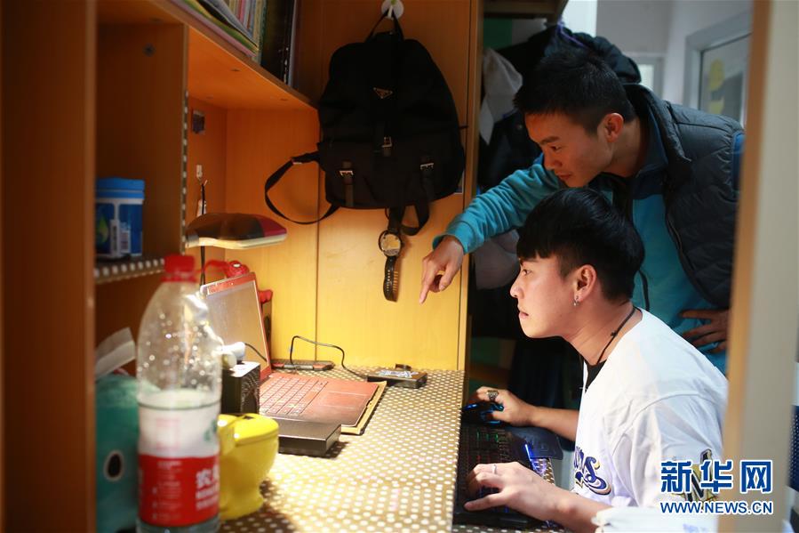 3月21日,在广西师范大学学生宿舍,“马龙队”队员苏钰(前)在整理背景音乐,以便在训练和比赛时使用。广西桂林有一支由高校学子组成的啦啦操队,他们先后5次在世界啦啦操比赛中获得冠军,这就是广西师范大学啦啦操队,他们还有一个帅气的队名——“马龙队”。 “马龙队”组建于2007年,如今共有队员23人,分别来自10多个不同专业。这支队伍主要训练啦啦操中的花球、街舞、爵士和技巧四大内容。队员们在平时练习时需要注重每一个细节动作,甚至到面部表情。勤奋打基础,苦练见实力,队里的学生们经常在艰苦的训练中受伤,不过他们从不轻言放弃。付出就会有所收获,翻看“马龙队”的荣誉簿:三次获得世界啦啦操锦标赛冠军、一次夺得世界啦啦操俱乐部锦标赛冠军、一次夺得世界大学生啦啦操锦标赛冠军……一项项荣誉见证着这个集体的拼搏与成长。新华社发(文月 摄)