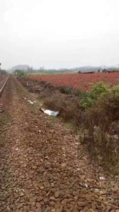 据现场目击者网友“飘雪”描述,当时她和友人在花海现场进行拍摄,事发前刚好抓拍到女孩在轨道上自拍的场景,但并没有看到火车撞人的过程。撞人事故发生时,火车从网友“飘雪”面前经过后停下,网友飘雪从火车尾部绕到铁路对面,远远看到女孩躺在地上,头部流血。她看到列车上有工作人员下车向周围的人询问情况,了解女孩姓名、来自哪里。随后,120救护车到达现场实施救助。网友“飘雪”称,她当时并没有靠近查看。图为网友拍摄的疑似被撞女孩。