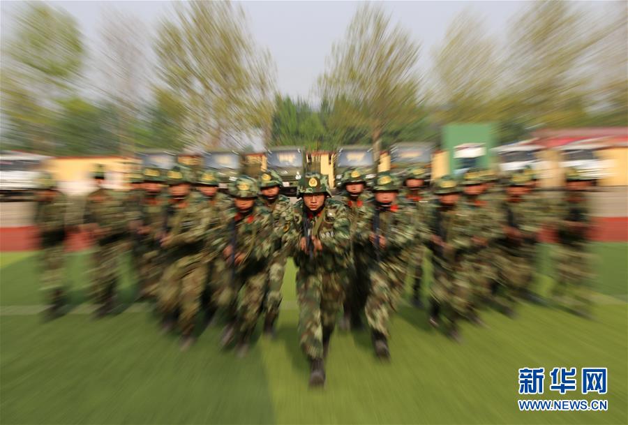 4月18日,河北省公安边防总队特勤队官兵在进行向“目标”突袭的训练。近日,河北省公安边防总队特勤队官兵针对河北沿海辖区特点,从实战出发,制定不同的处置方案,开展城区、海滩和丛林处突技能训练,以提高官兵在执行急难险重任务时的综合能力。新华社记者 杨世尧 摄