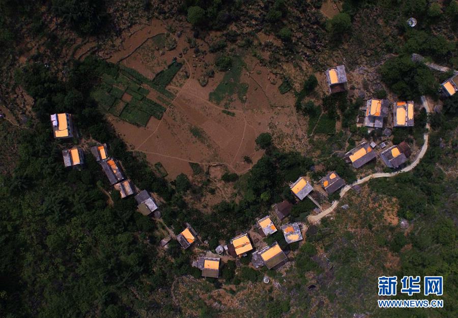 2015年7月14日,大化瑶族自治县板升乡弄刀屯村民在屋顶晾晒玉米。新华社记者张爱林摄