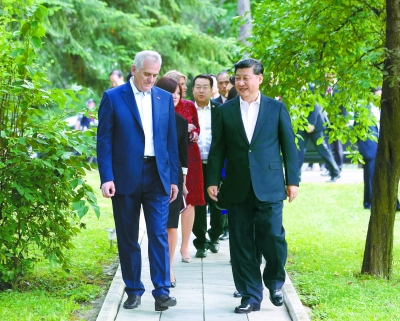 习近平和夫人彭丽媛抵达和平别墅猎人小屋时,受到尼科利奇和夫人德拉吉察热情迎接。尼科利奇再次热烈欢迎习近平到访塞尔维亚。习近平对塞尔维亚政府和人民的热情友好表示感谢。