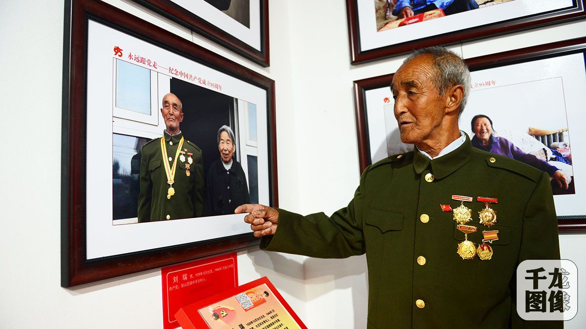 6月27日,延庆区《永远跟党走—纪念中国共产党成立95周年老党员风采展》向公众开放。图为87岁建国前老党员刘瑞,在现场讲述当年的故事。贾德勇摄 千龙网发