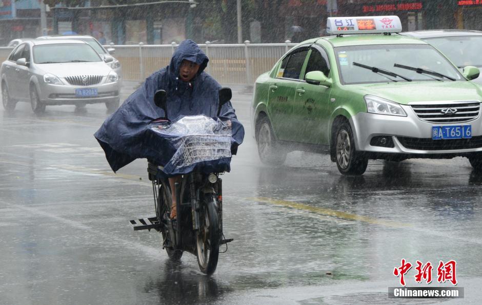 7月9日,2016年第1号台风“尼伯特”给福州带来暴雨,市民出行艰难。当天,福建省气象台发布台风警报称,“尼伯特”将于当天中午前后在泉州晋江到莆田秀屿一带沿海登陆,在福建省停留时间长,降水强度强、范围广。图为市民出行困难。 刘可耕 摄
