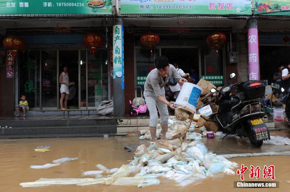7月9日13时45分,今年第1号台风“尼伯特”以强热带风暴级在福建石狮沿海登陆,中心最大风力10级(25米/秒)。受其影响,福建中部沿海地区发生暴雨到大暴雨,局部特大暴雨,造成莆田、闽清、永泰等多地内涝严重。图为莆田市区一婴儿用品店商家正清理被水淹过的尿不湿。 中新社记者 吕明 摄