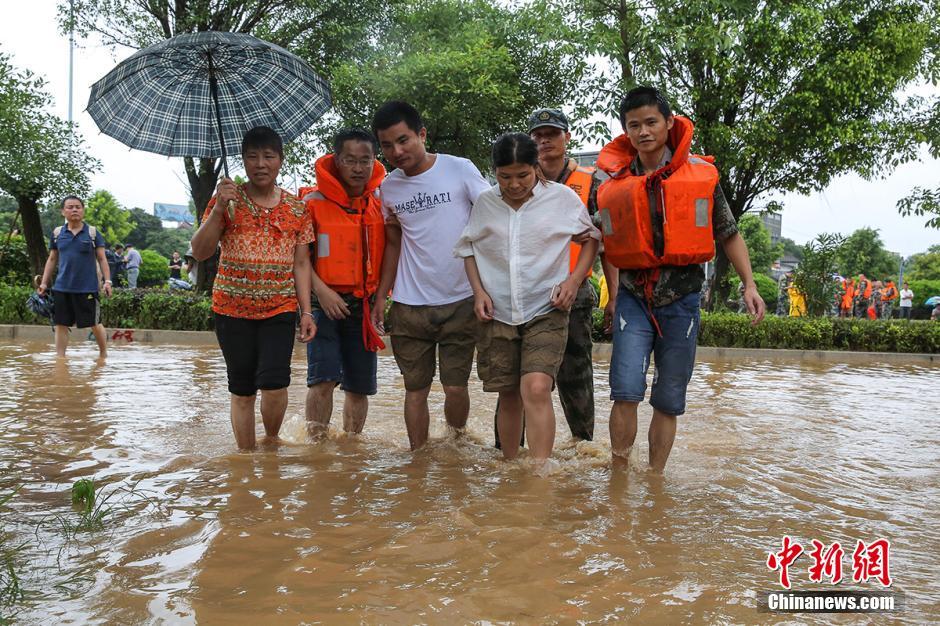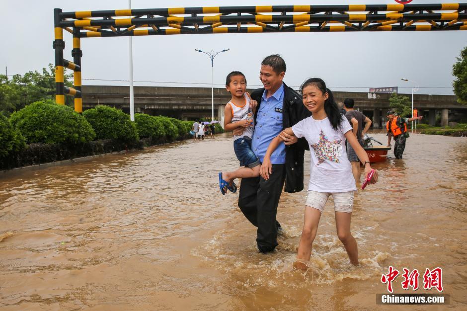 7月8日夜间开始,“尼伯特”便为福建带来疾风骤雨。据8日7时至9日7时统计,全省降雨量50~100毫米有6个县(市、区),超100毫米有10个县(市、区),以城厢区266毫米为最大。受强降雨影响,福建莆田市、福州市永泰县、闽清县等多地发生严重内涝。在重灾区莆田市荔城区新度镇,多处道路、民房均被淹,导致多人被困,当地消防官兵推船进村、救出被困民众。图为莆田市新度镇沟尾村村民被救出。 汤珺琳 摄