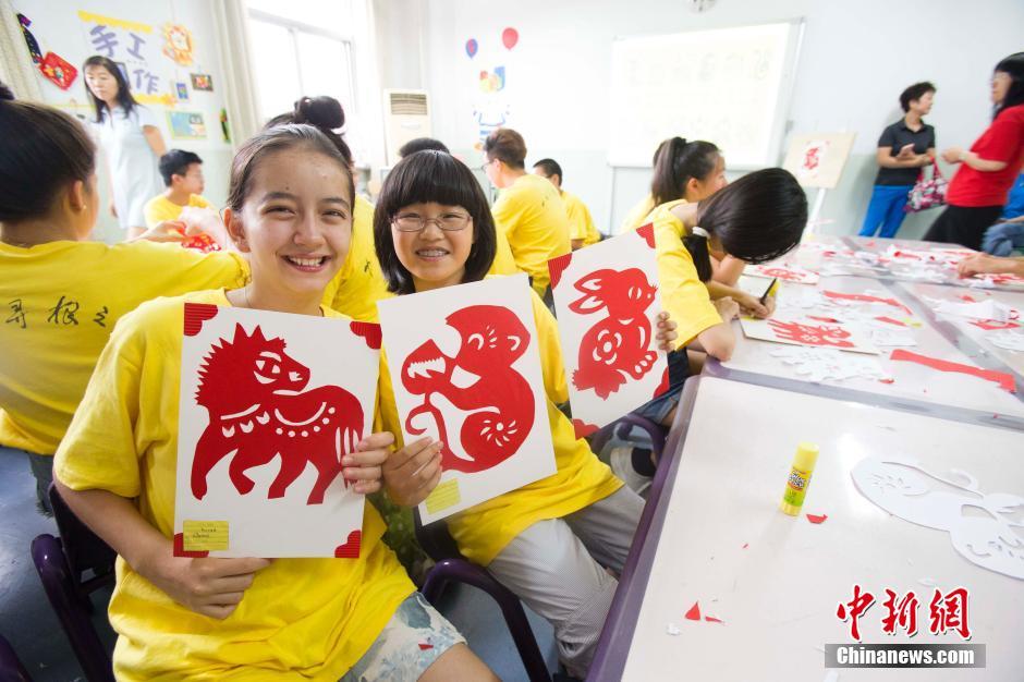 几名华裔少年展示自己的剪纸作品。 张云 摄