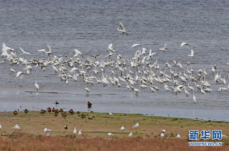 近日,成群的白鹭雏鸟开始离开巢穴飞到秦皇岛海边湿地觅食,场面壮观。据了解,该市近年来不断加大沿海湿地保护力度,每年约有400多种、上千万只候鸟南北迁徙经过这里,还有种类数量可观的夏候鸟和留鸟在本地繁衍生息,鸟类资源丰富。新华社记者杨世尧摄