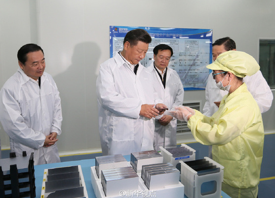 23日下午,习近平来到国家电投太阳能电力有限公司西宁分公司,考察青海省依托自然资源优势发展清洁能源、推进光伏产业链发展情况。习近平走进太阳能电池生产车间,拿起一块太阳能电池板仔细察看,了解电池板制造工艺、工作原理。习近平强调,青海要抓住人才、技术、资金等关键环节,发展好光伏一条龙全产业链,让清洁能源更好造福人民。 (文字/新华社记者霍小光,摄影/新华社记者兰红光、庞兴雷 据新华社“新华视点”微博报道)
