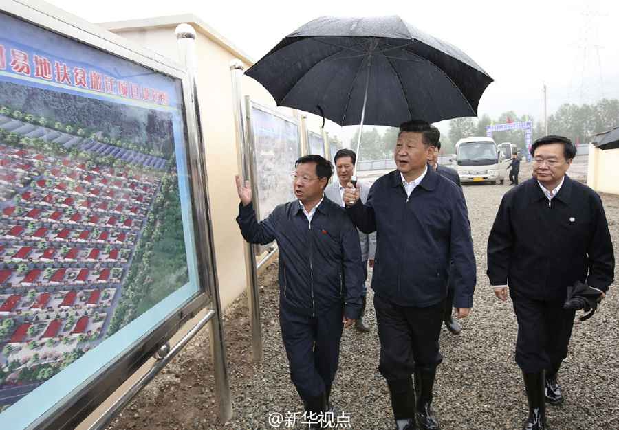 新华网北京8月23日电 习近平总书记23日上午来到海东市互助土族自治县五十镇班彦村,考察易地扶贫搬迁新村建设情况。在新村建设工地,习近平冒着蒙蒙细雨,走过尚未完工的泥泞道路,来到村民吕有章的新家,察看房屋格局,了解施工进展,关心火炕取暖效果。班彦村旧村处在生存条件十分恶劣的地带,山上不通自来水,村民们用的都是窖水。看到新居的院子里两个水桶装上了自来水,习近平说,新村水、电、通信都方便了,希望乡亲们日子越过越好。