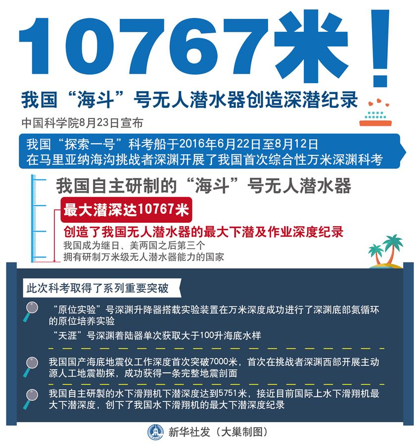 图表:10767米!我国“海斗”号无人潜水器创造深潜纪录 新华社发 大巢制图