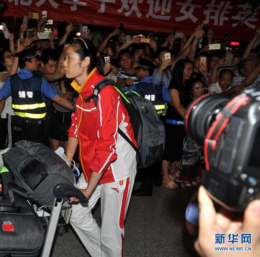 8月23日,中国女排队员朱婷抵达北京首都国际机场。当晚,在里约奥运会获得金牌的中国女排回国。 新华社记者陈晓伟摄
