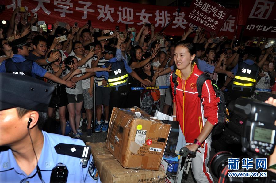 8月23日,中国女排队员张常宁抵达北京首都国际机场。当晚,在里约奥运会获得金牌的中国女排回国。 新华社记者陈晓伟摄