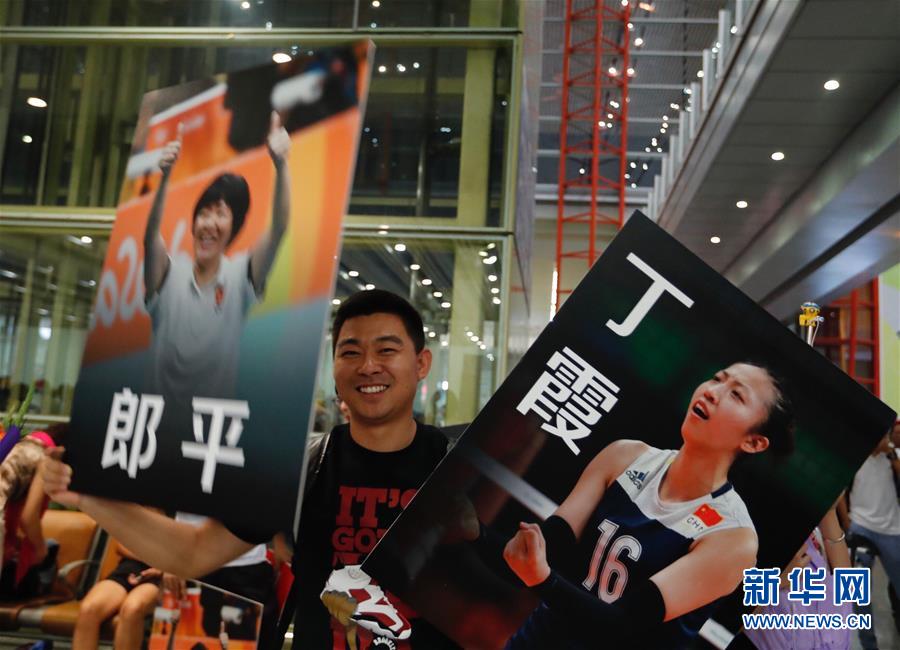 8月23日,球迷在北京首都国际机场等待中国女排。当晚,在里约奥运会获得金牌的中国女排回国。 新华社记者陈建力摄