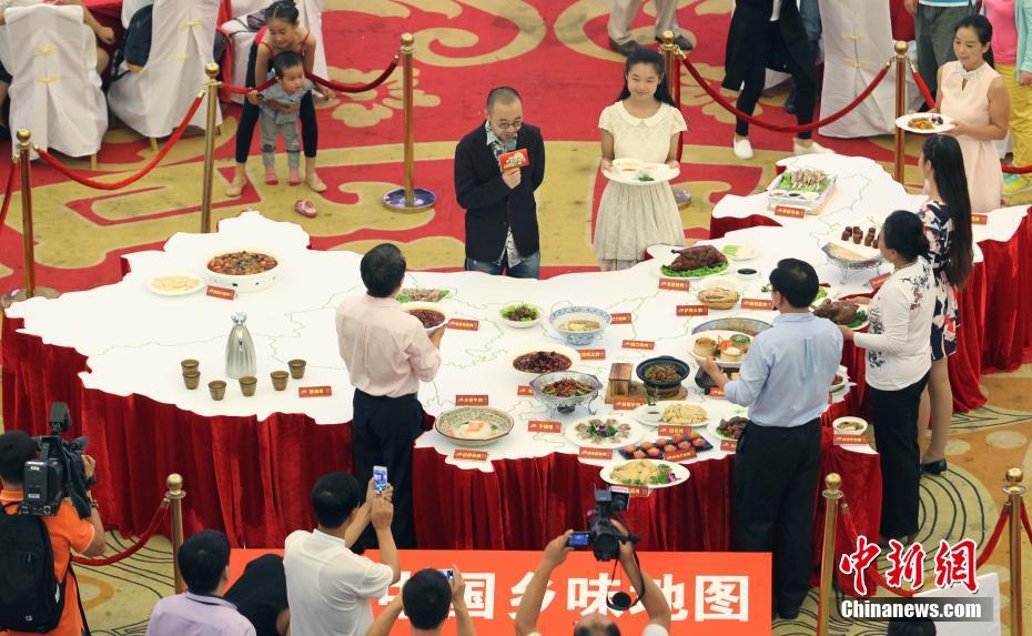 9月11日晚,来自河南、山东、四川、内蒙等全国各地的近千名老乡欢聚“中秋超级团圆饭”北京主会场,提前团圆过中秋。当晚除了北京主会场,活动还在济南、苏州、深圳、伦敦、巴黎、悉尼等分会场同步举行,并通过技术平台实现各地活动之间现场直播互动。当天亮相的“中国乡味地图”同样令人瞩目。通过数万人投票选出、囊括了全国34个省市的家乡代表菜,其中包括四川水煮牛肉、广东白切鸡、河南道口烧鸡、山东九转大肠等。刘仪伟亲自推荐家乡四川的代表菜,他说,家乡菜的味道就是乡愁的味道。图为刘仪伟点评“中国乡味地图”。 中新社记者 苏丹 摄