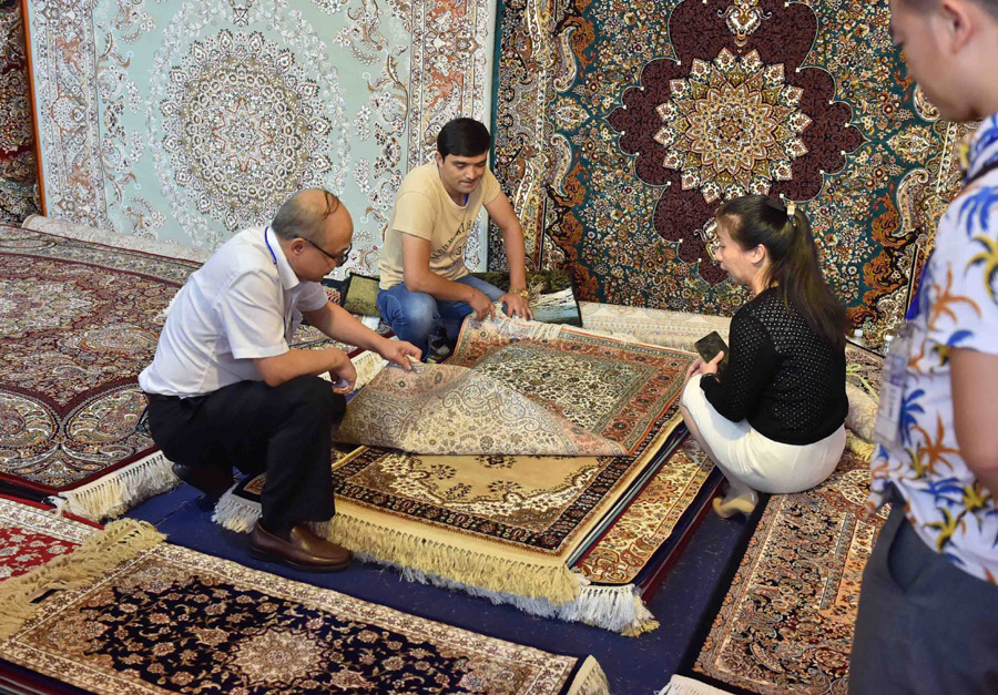 9月12日,观众在伊朗商品展区选购商品。(新华社记者 周华 摄)随着中国-东盟博览会的影响日益扩大,国外客商纷纷借助博览会展示商品,拓展中国及东盟市场。