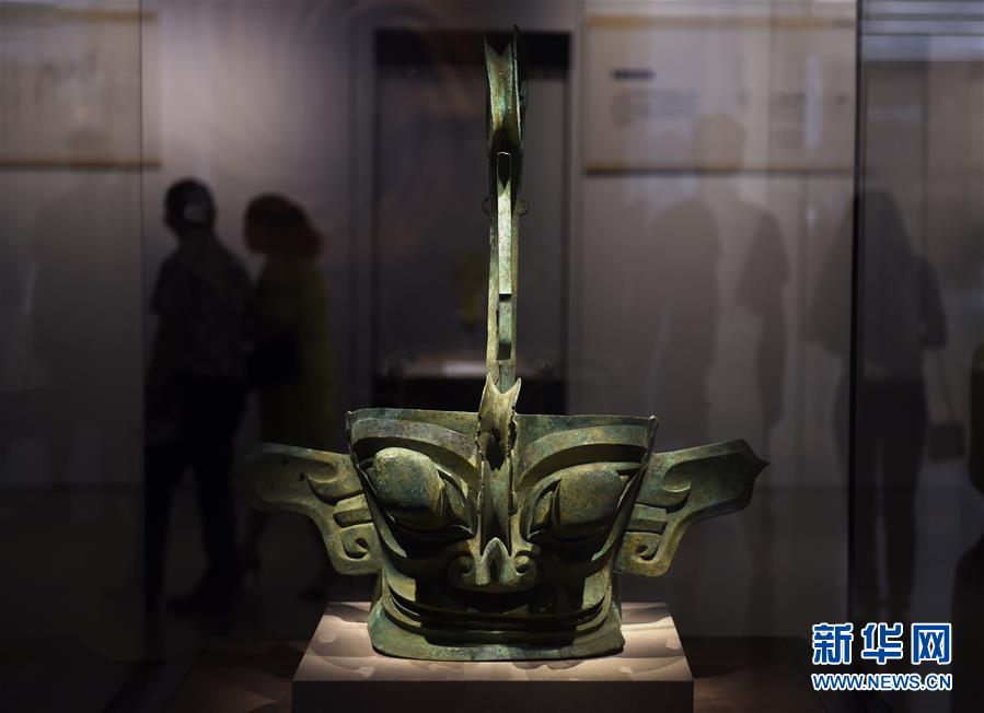 9月20日,出土于三星堆遗址的商代青铜纵目大面具在长沙博物馆展出。当日,“神秘的古蜀王国——三星堆和金沙遗址出土文物精华展”在长沙博物馆正式向公众免费开放,展览展出的137件文物出土于三星堆遗址和成都金沙遗址,集结了四川广汉三星堆博物馆、成都金沙遗址博物馆两馆的文物精华,包括青铜纵目大面具、戴金面罩青铜人头像、铜太阳形器在内的一批重要文物再现了辉煌璀璨的古蜀文化。据悉,本次展览将持续到12月20日。新华社记者 李尕 摄