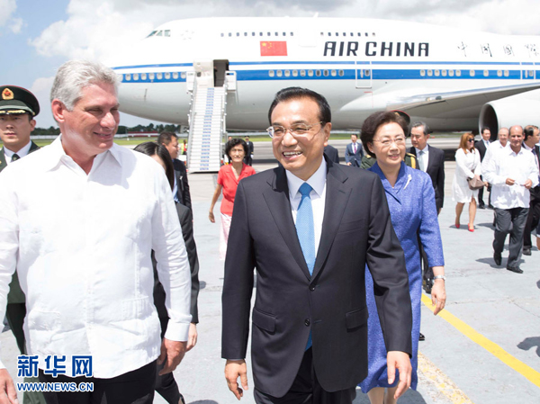 李克强和夫人程虹是在圆满结束对加拿大的正式访问后抵达哈瓦那的。离开蒙特利尔时,加拿大魁北克省省长库亚尔等政府高级官员和中国驻加拿大大使罗照辉到机场送行。
