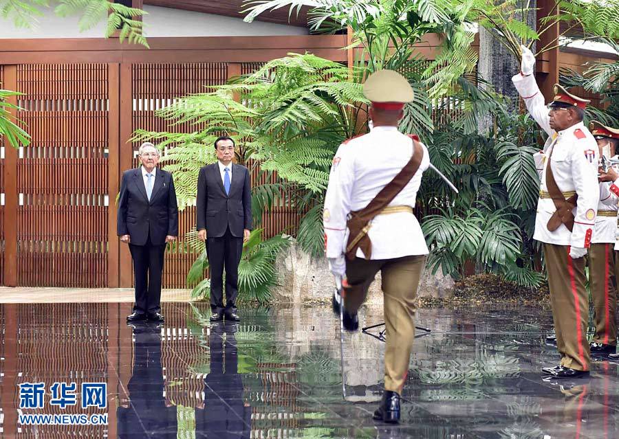 当地时间9月24日,国务院总理李克强在哈瓦那革命宫同古巴国务委员会主席兼部长会议主席劳尔·卡斯特罗举行会谈。会谈前,劳尔·卡斯特罗在革命宫为李克强举行隆重的欢迎仪式。新华社记者 李涛 摄