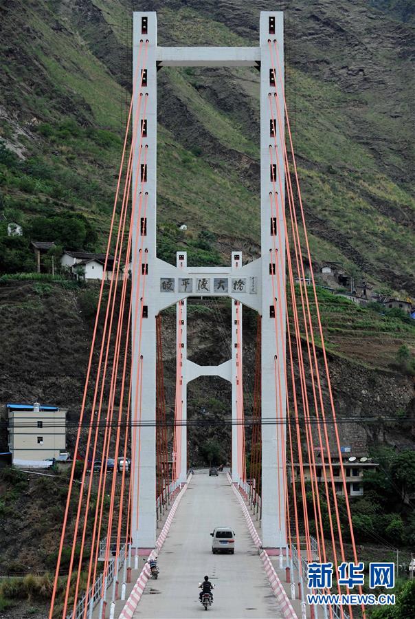 位于云南禄劝县与四川会理县交界处金沙江上的皎平渡大桥(2011年6月15日摄)。1935年5月,红一方面军在36名船工的帮助下,胜利渡过了金沙江,摆脱了国民党军队的围追堵截,取得了战略转移中具有决定意义的胜利。 新华社记者蔺以光摄