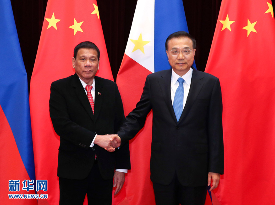 10月20日,国务院总理李克强在北京人民大会堂会见来华进行国事访问的菲律宾总统杜特尔特。 新华社记者 庞兴雷 摄