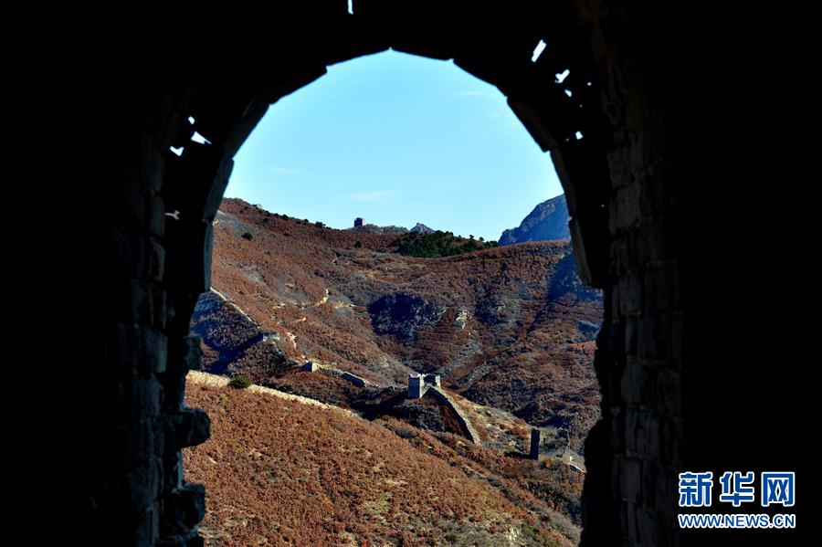 这是秦皇岛市海港区境内的古长城景色(11月1日摄)。深秋时节,河北省秦皇岛市海港区境内的古长城与秋叶相互衬托,构成一幅美丽的画卷。 新华社记者 牟宇 摄