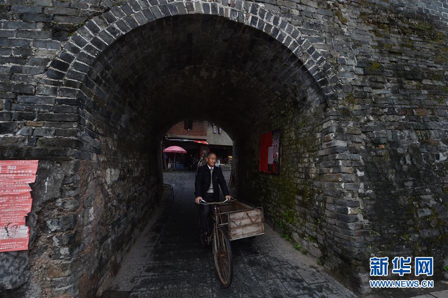 11月13日,当地居民骑车从汀州古城墙惠吉门通过。汀州古城墙位于福建省长汀县,是汀州古城的标志之一。古城墙始建于唐大历四年,依山傍水,体现了我国古代高超的建筑技艺和不朽的艺术价值。现在保存完好的城墙近3000米,2013年被列为全国重点文物保护单位。新华社记者 宋为伟 摄