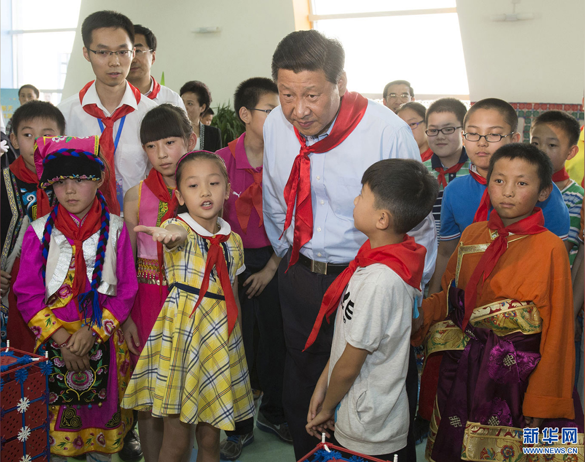2013年5月29日,中共中央总书记、国家主席、中央军委主席习近平在北京市少年宫参加“快乐童年放飞希望”主题队日活动。这是习近平在察看孩子们进行“美好家园创意搭建”的情况。 新华社记者李学仁摄