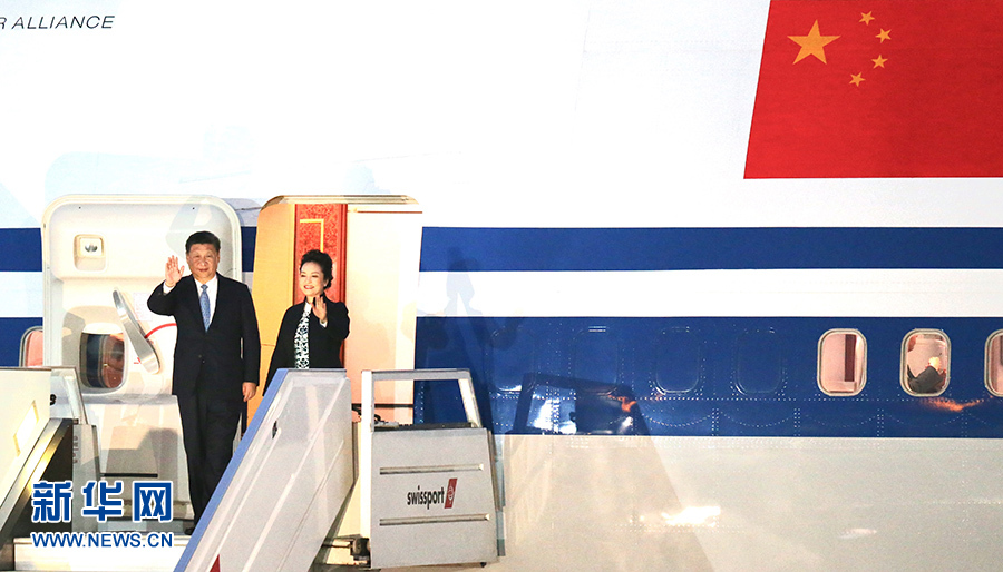 当地时间11月18日,国家主席习近平抵达利马,出席亚太经合组织第二十四次领导人非正式会议并对秘鲁共和国进行国事访问。习近平和夫人彭丽媛受到秘鲁副总统阿劳斯等热情迎接。新华社记者 丁林 摄