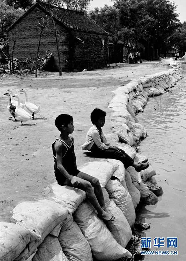 黄河第一号洪峰通过河南省花园口附近的一个村庄(1992年8月16日摄)。