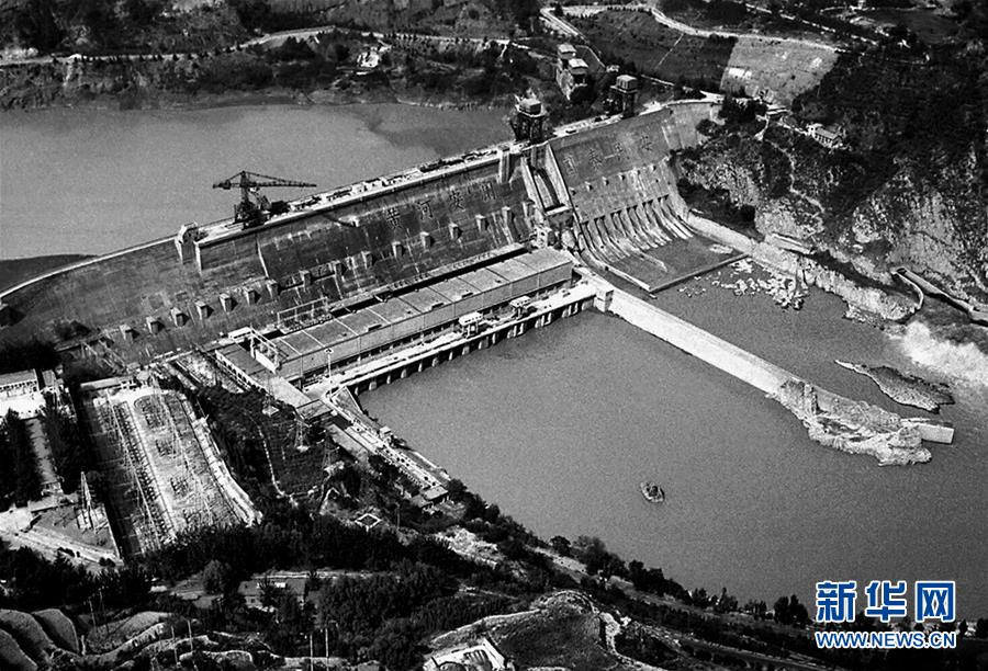 鸟瞰三门峡黄河大坝(1997年8月摄)。