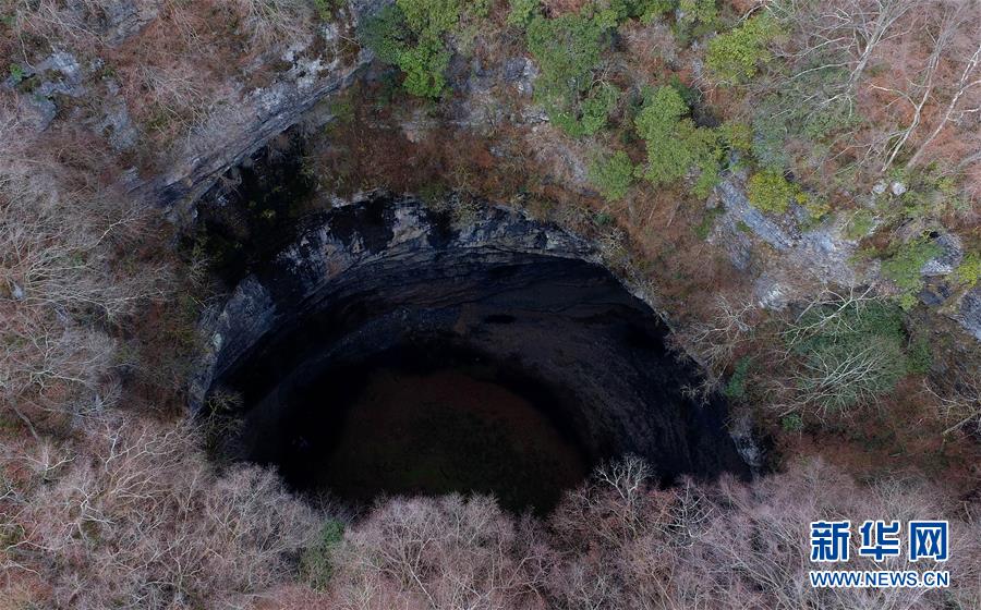 这是航拍的镇巴县巴山林场附近的天悬天坑(12月3日摄)。 新华社记者陶明 摄