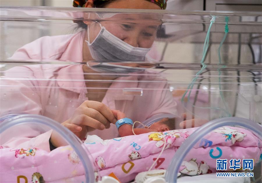 12月28日,在重庆市妇幼保健院新院区的病房内,一名护理人员在陪护刚刚完成转运入住新病房的新生儿。