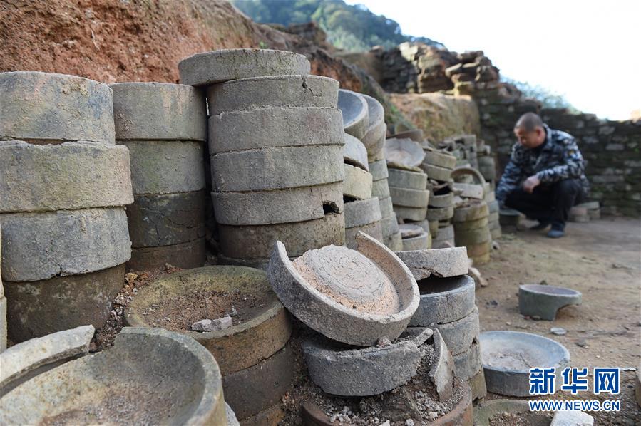 福建漳州南靖东溪窑遗址挖掘出的匣钵(12月27日摄)。
